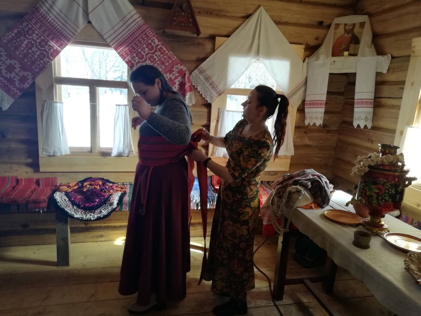 Участники программы смогли рассмотреть традиционные наряды, узнать о символике вышивки и о том, как девушки готовили себе приданое.
